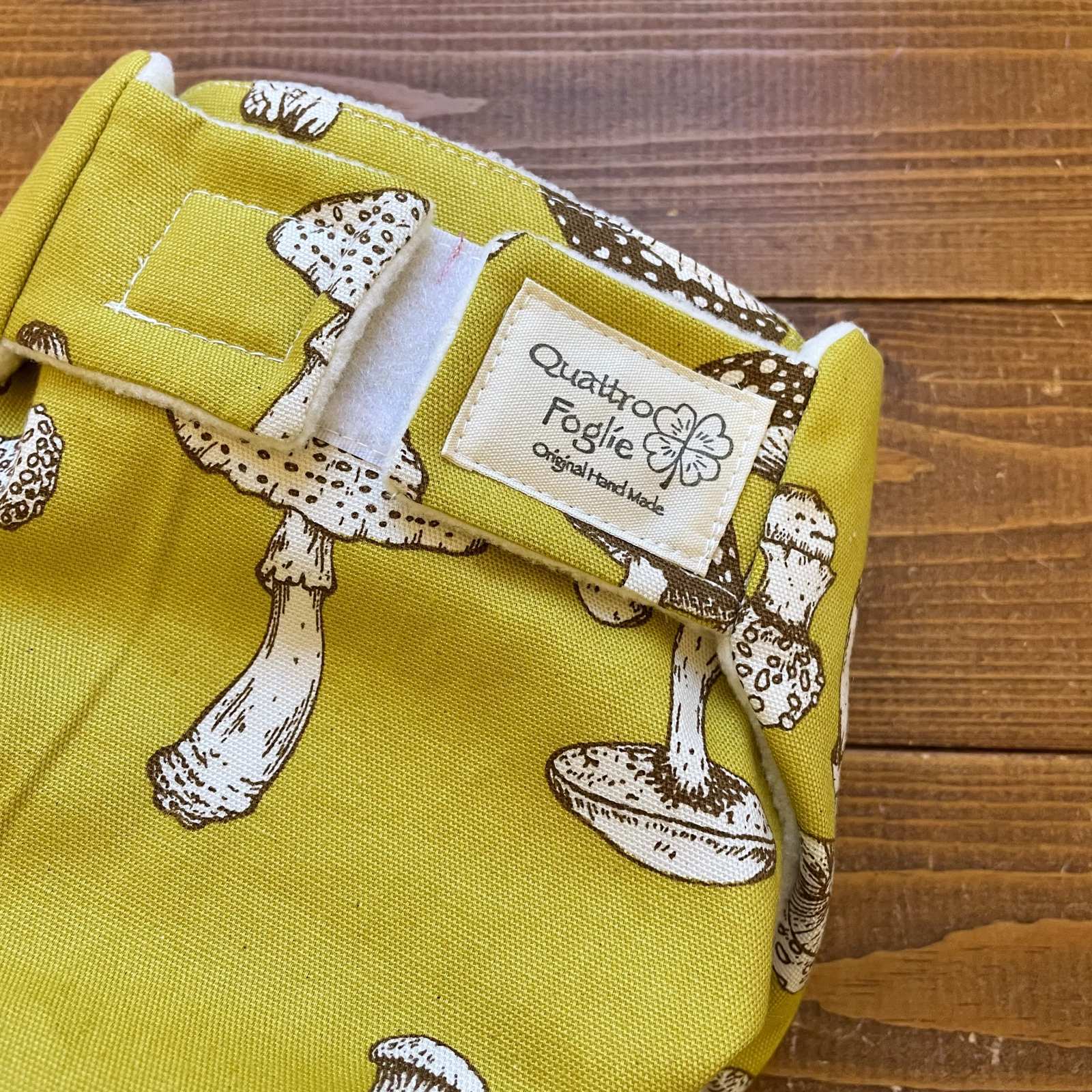 - > リアルキノコ(マスタード)【よつばのおむつ/日本製/ハンドメイド】布おむつカバー (透湿性防水布使用)きのこ※ご希望のサイズをお知らせください