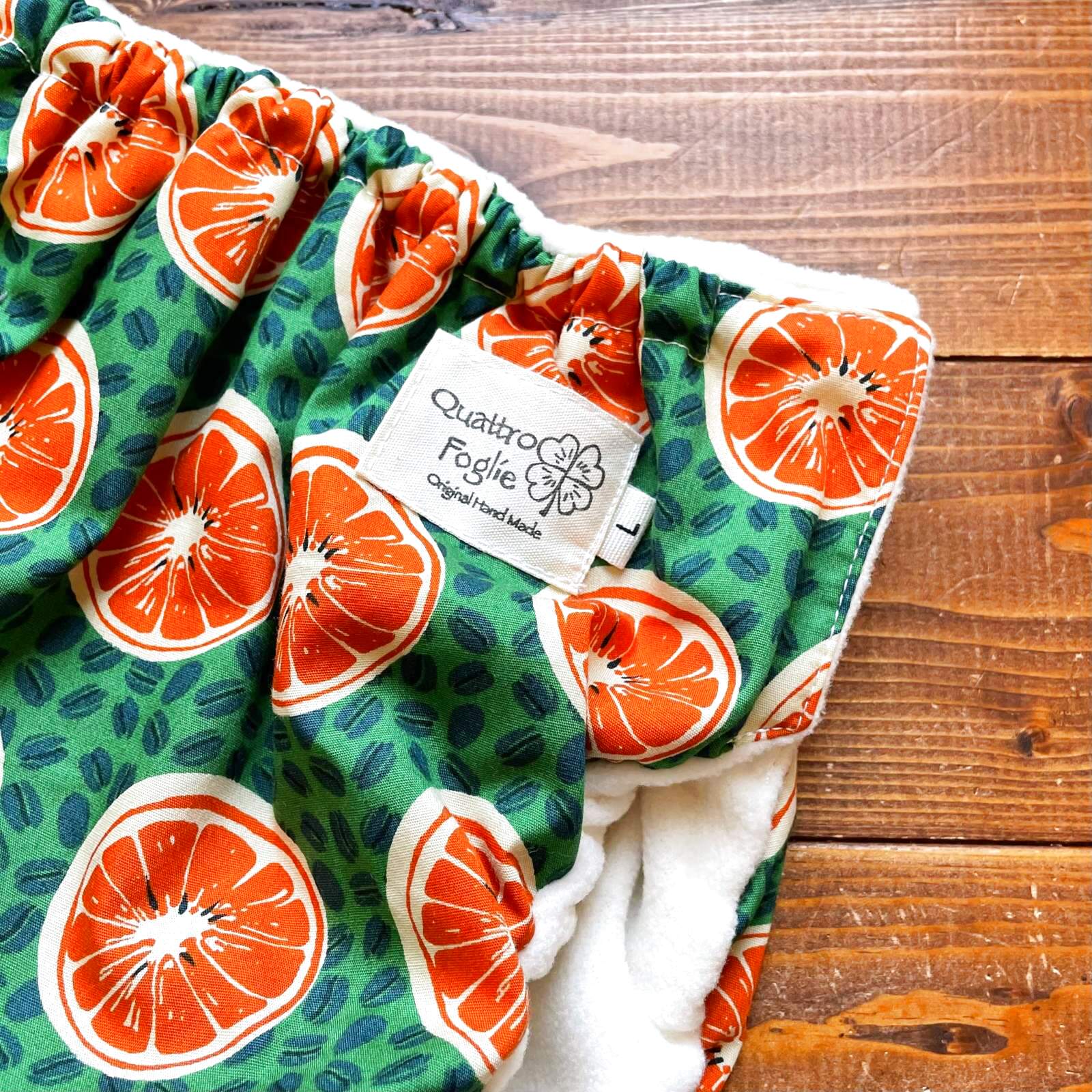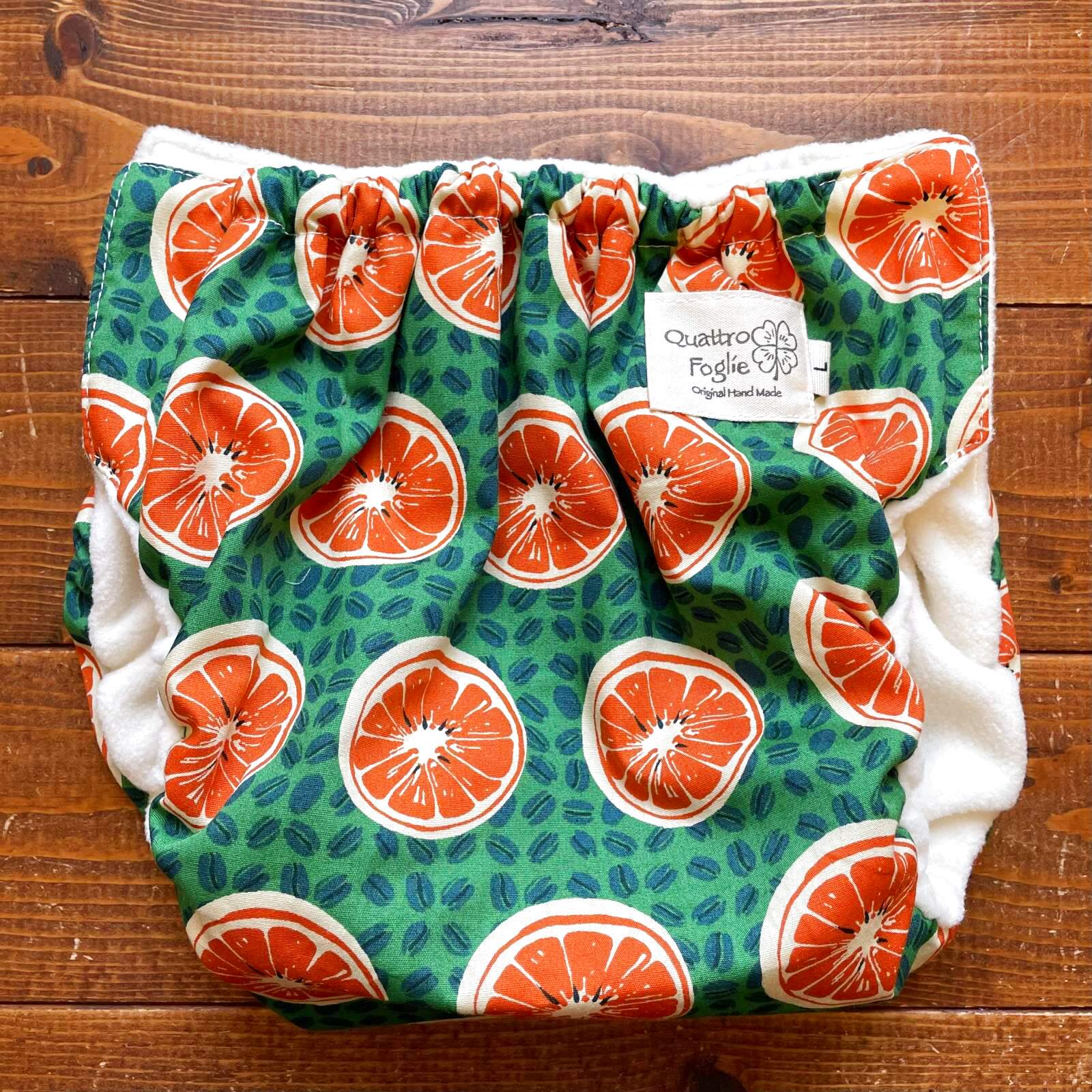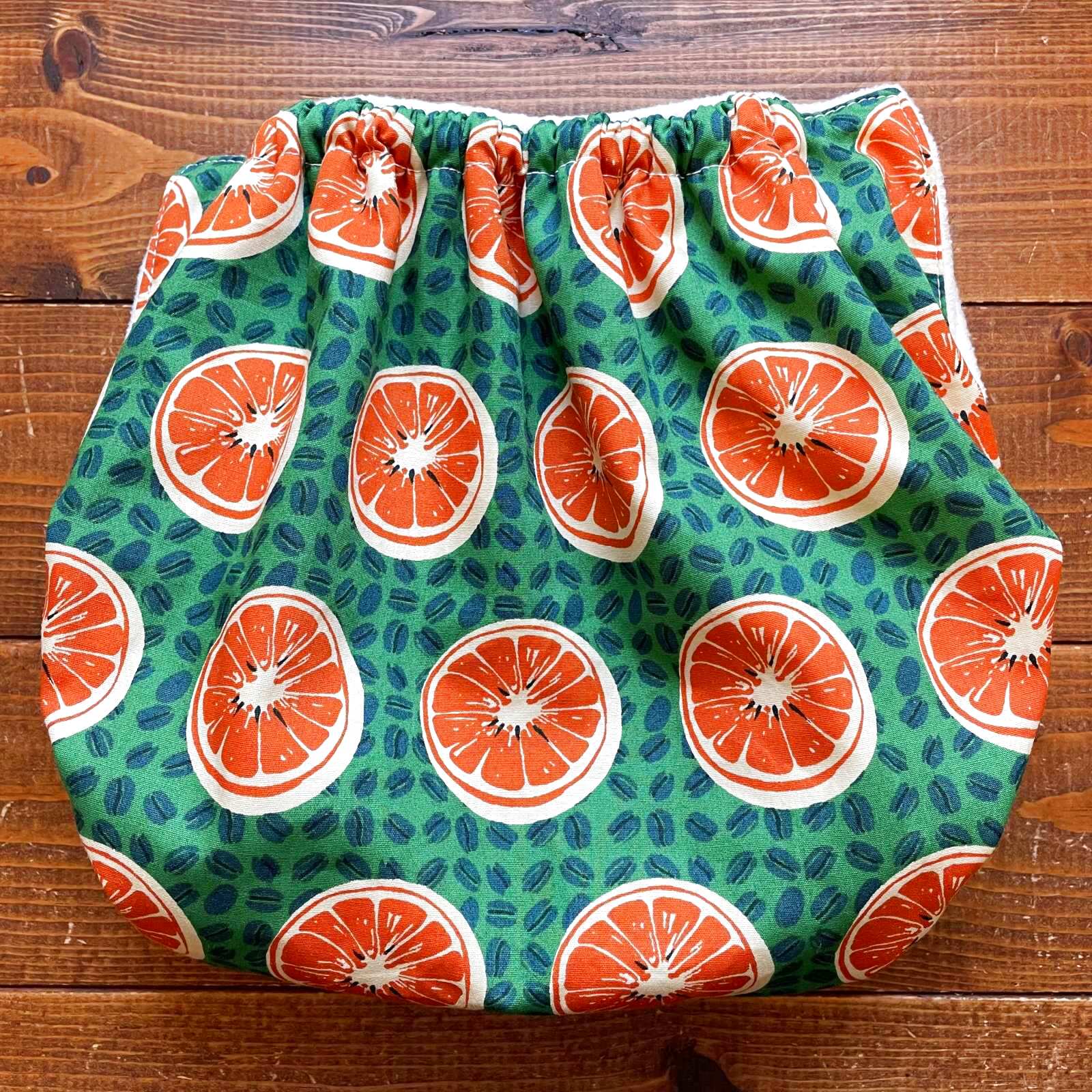- > コーヒー豆とオレンジ(グリーン)【トレパンM~L】立ったまま交換出来る♪パンツ型おむつカバー(防水)緑,珈琲