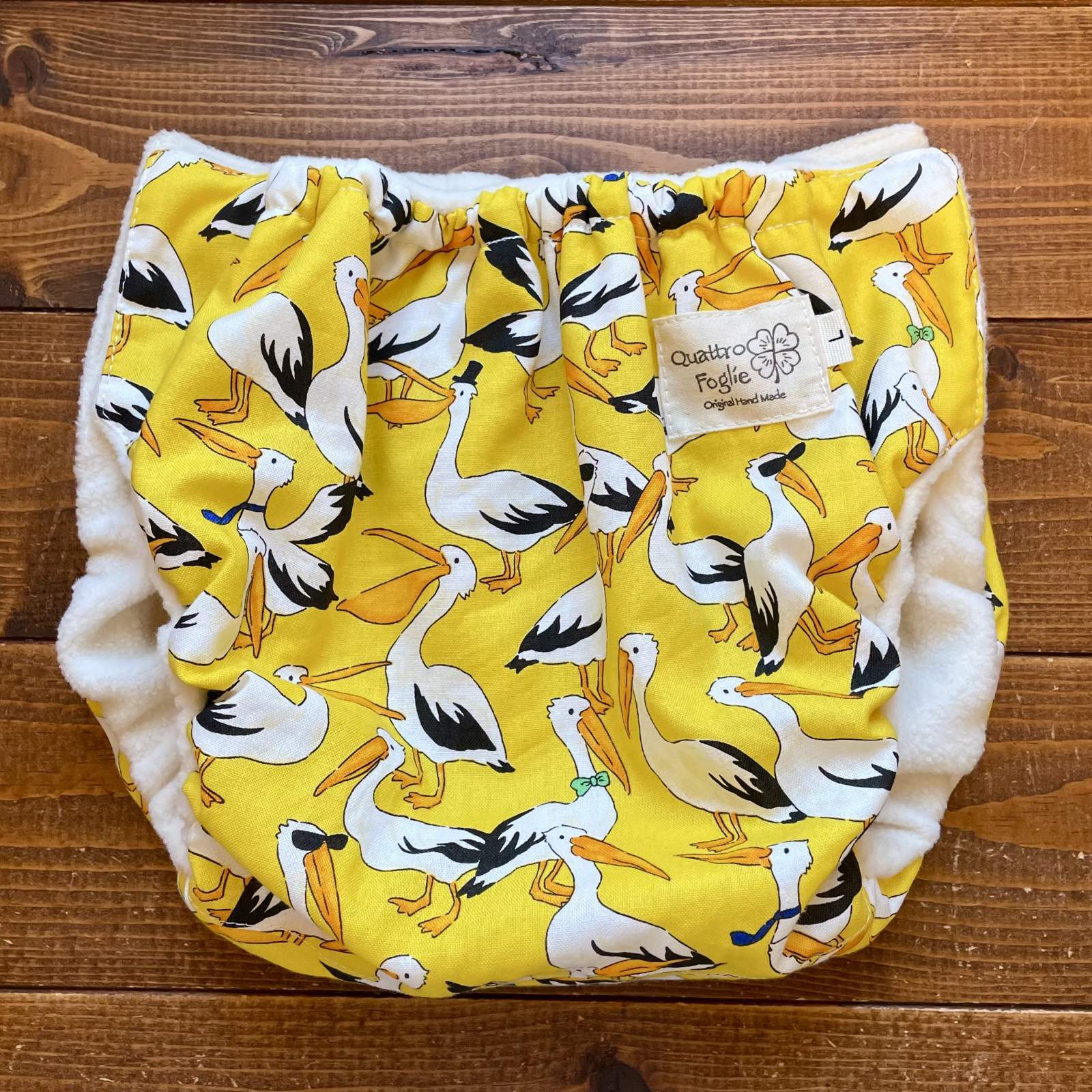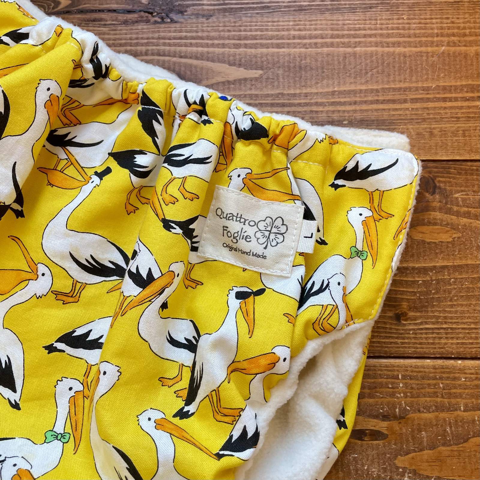 - > おさんぽペリカン(イエロー) 透湿性防水布入りトレパン【ハンドメイド】立ったまま交換出来る♪パンツ型おむつカバー/トリ,鳥
